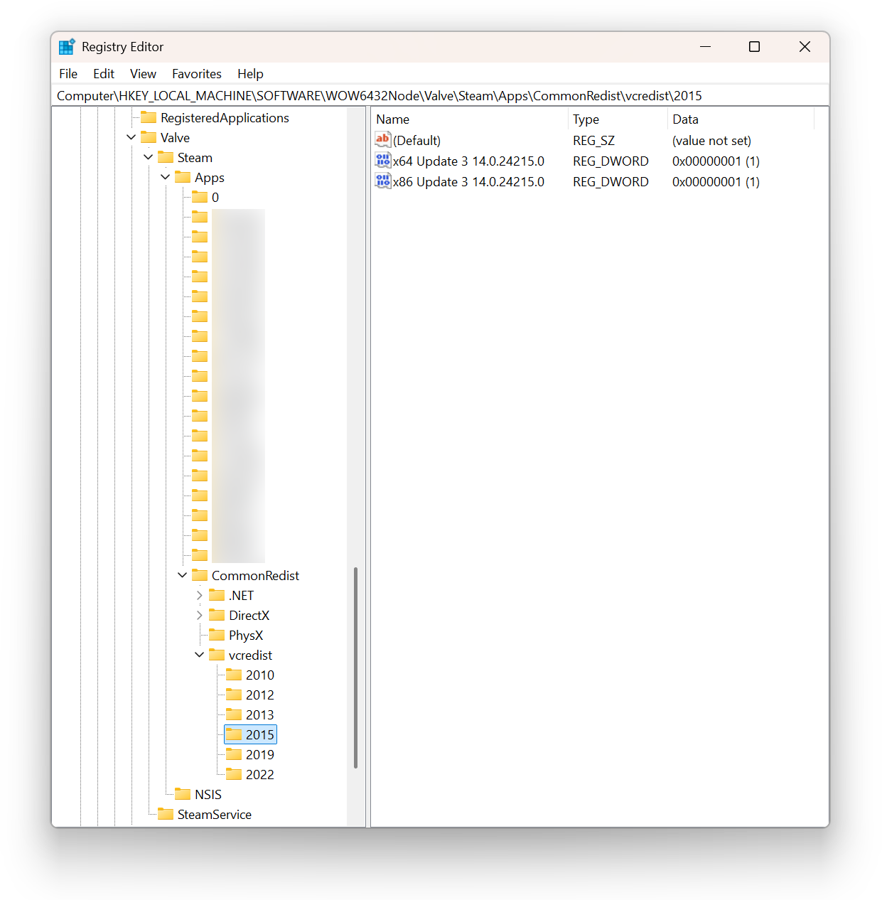 "hasrunkey" "HKEY_LOCAL_MACHINE\\Software\\Valve\\Steam\\Apps\\CommonRedist\\vcredist\\2015"